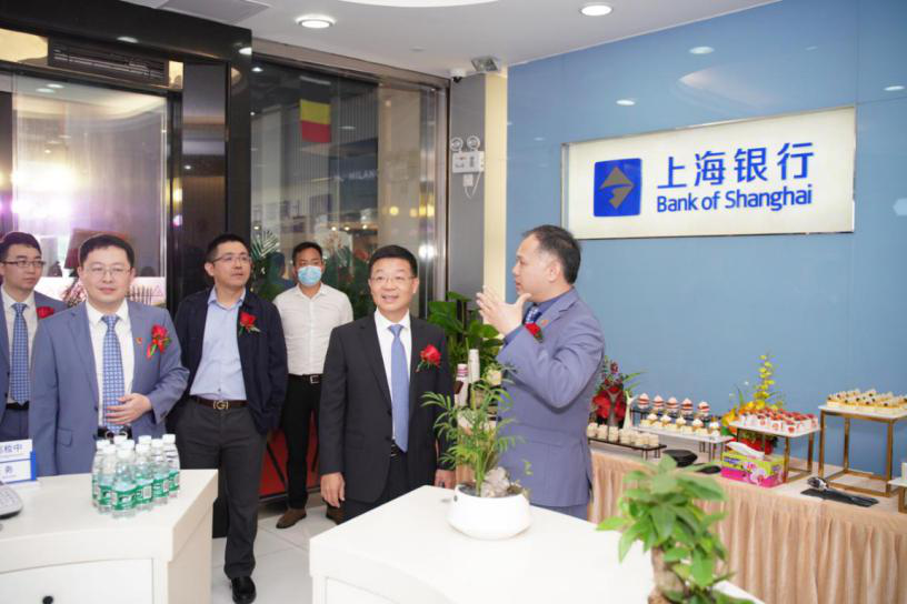 上海銀行深圳分行副行長(zhǎng)陳璇強(qiáng)與鹽田支行行長(zhǎng)劉源共同揭幕