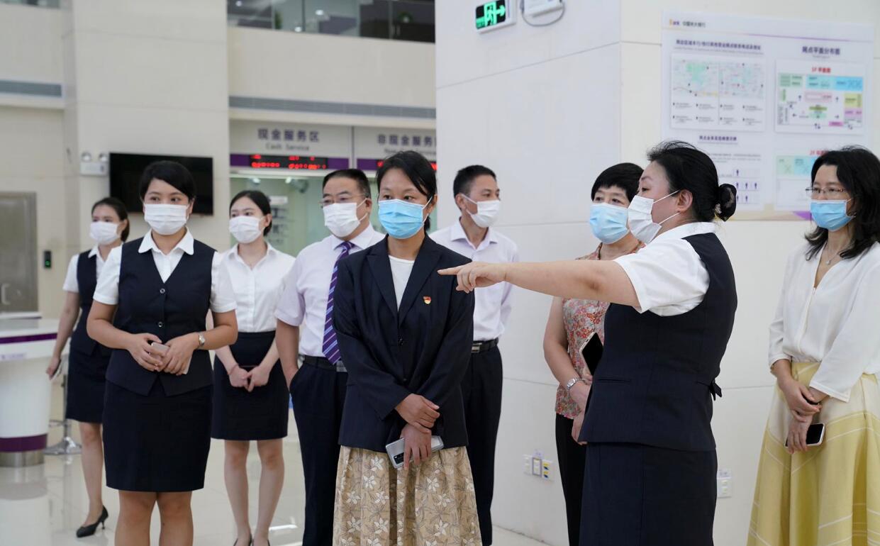 分行黨委高度重視此次調(diào)研活動,紀委書記方眾部署安排,在分行渠道管理部/消費者權(quán)益保護部和支行負責人陪同下,朱會長一行參觀了高新技術(shù)園支行營業(yè)部,對網(wǎng)點的服務環(huán)境、服務功能布局、大堂管理、柜面服務與效率、消費者權(quán)益保護與責任、服務文化建設等情況進行了現(xiàn)場調(diào)研,并與相關負責人進行了深入交流。胡曉莉主任現(xiàn)場體驗了光大銀行智能柜臺的服務后,對于其便捷性、智能性予以肯定。