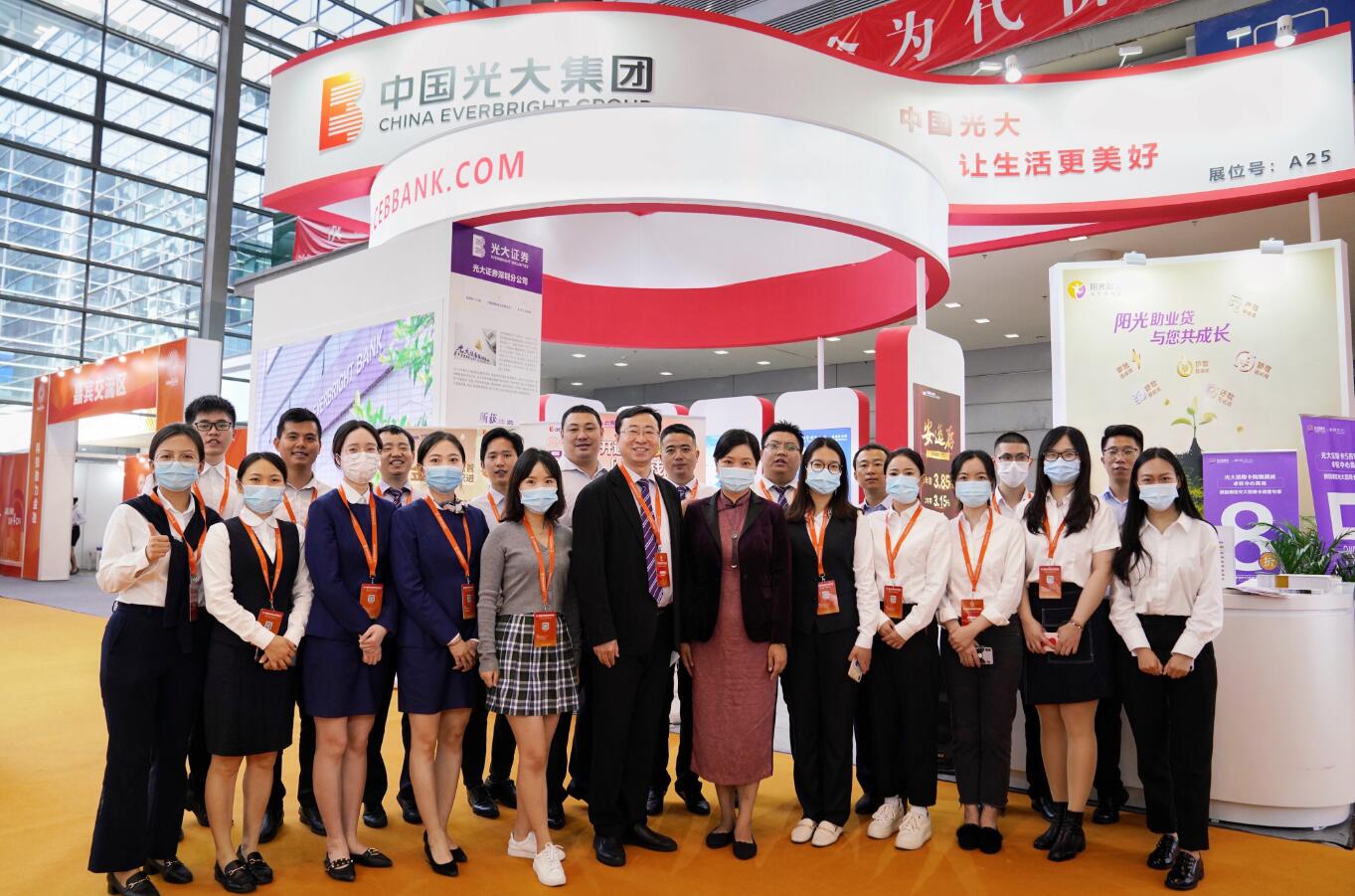 深圳新聞網(wǎng)·見圳客戶端2020年11月5日訊 近日,第十四屆深圳國際金融博覽會在會展中心舉行。在這場金融盛會上,光大銀行深圳分行攜手光大集團(tuán)駐深單位——光大證券、光大保險、光大信托、光大期貨、中青旅等參展,范圍涵蓋銀行、證券、保險、期貨、信托等領(lǐng)域,向社會公眾展示了光大集團(tuán)金融科技創(chuàng)新、普惠金融、社會責(zé)任等各方面成果,受到與會各界關(guān)注。其中,中國光大銀行日前發(fā)布的金融消費者權(quán)益保護(hù)品牌--“陽光消?!?/span>也正式在深圳金博會亮相,光大銀行帶來的“陽光”品牌矩陣讓參觀者印象深刻。