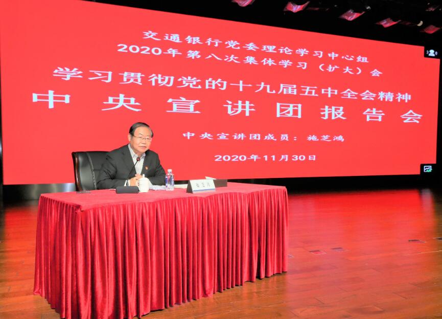 深圳新聞網(wǎng)·見圳客戶端2020年12月1日訊 昨日,交通銀行舉行學習貫徹黨的十九屆五中全會精神中央宣講團報告會暨黨委理論學習中心組第八次集體學習(擴大)會。中央宣講團成員、中央政策研究室原副主任施芝鴻作宣講報告,黨委書記、董事長任德奇主持報告會。