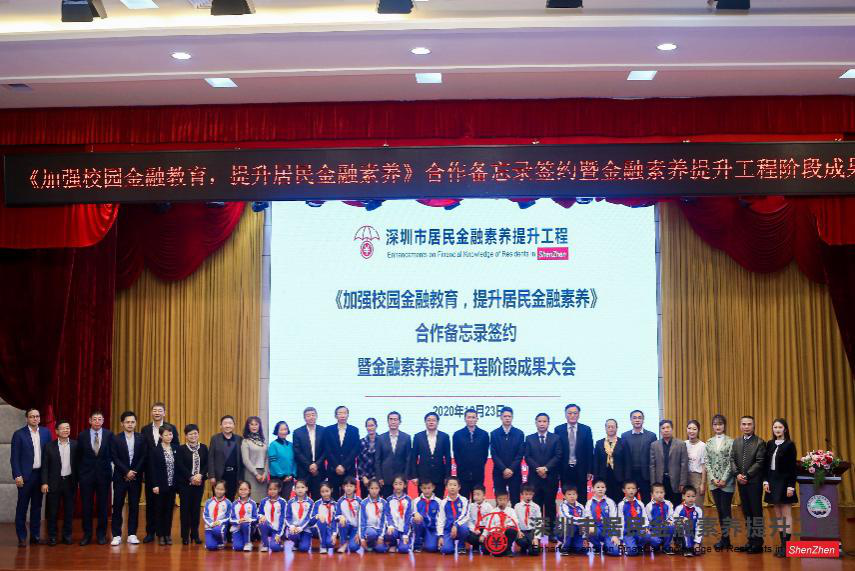 深圳新聞網(wǎng)·見圳客戶端2020年12月28日訊 近日,由中國人民銀行深圳市中心支行、深圳銀保監(jiān)局、深圳證監(jiān)局、深圳市地方金融監(jiān)督管理局、深圳證券交易所、深圳市教育局、福田區(qū)人民政府主辦,深圳市民政局協(xié)辦的《加強(qiáng)校園金融教育,提升居民金融素養(yǎng)》合作備忘錄簽約暨金融素養(yǎng)提升工程階段成果大會(huì)在福田實(shí)驗(yàn)僑香學(xué)校舉行。深圳市政府、相關(guān)機(jī)構(gòu)領(lǐng)導(dǎo),市各金融機(jī)構(gòu)代表、市區(qū)中小學(xué)校領(lǐng)導(dǎo)、街道社區(qū)負(fù)責(zé)人以及僑香學(xué)校的師生們等逾200人出席了大會(huì)。