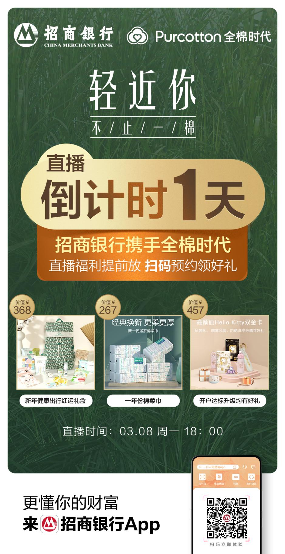 為了提升活動(dòng)效果以及節(jié)日噱頭,招行深圳分行積極向商戶爭(zhēng)取了全棉時(shí)代的直播禮品,直播當(dāng)天全棉時(shí)代為招行用戶提供價(jià)值50萬的禮品,同時(shí)在宣傳端,為了打造活動(dòng)熱點(diǎn),全棉時(shí)代在超過500個(gè)社群內(nèi)進(jìn)行活動(dòng)推送,招行端也積極爭(zhēng)取總行資源,在App、微信視頻號(hào)及朋友圈進(jìn)行宣傳。