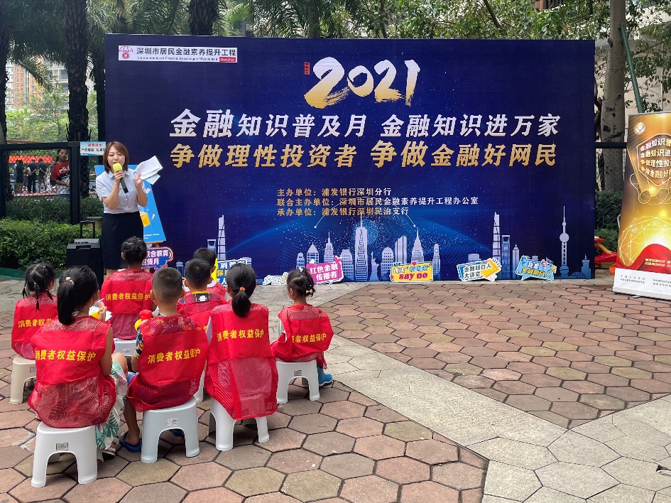 讀特客戶端?深圳新聞網(wǎng)2021年9月12日訊 (通訊員王曦晨)9月12日下午,為普及金融知識,引導(dǎo)社區(qū)居民樹立正確的消費觀和價值觀,由深圳市地方金融監(jiān)督管理局發(fā)起,中國人民銀行深圳市中心支行、深圳銀保監(jiān)局、深圳證監(jiān)局、深圳證券交易所、深圳市居民金融素養(yǎng)提升工程辦公室聯(lián)合指導(dǎo),深圳市互聯(lián)網(wǎng)金融協(xié)會執(zhí)行開展的2021年“金融知識普及月,金融知識進萬家”活動在龍華水榭春天五期舉行。