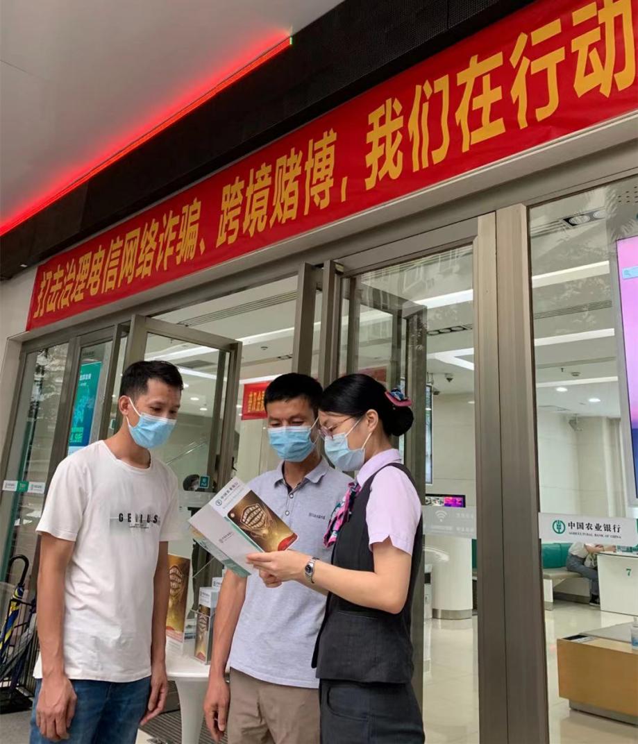一直以來,農(nóng)行深圳分行高度重視防范打擊電信網(wǎng)絡詐騙,以實際行動為人民財產(chǎn)安全構筑重重“防護墻”。近日,為深入貫徹落實黨中央、國務院決策部署,切實增強人民群眾防詐拒賭意識和能力,農(nóng)行深圳分行以“反詐拒賭,安全支付”“打擊治理電信網(wǎng)絡詐騙、跨境賭博,我們在行動”為宣傳主題,開展了打擊治理電信網(wǎng)絡詐騙、跨境賭博集中宣傳月活動?;顒又?,由該行行領導帶頭成立了領導小組,統(tǒng)一部署,層層落實防范職責;加強一線員工的電信詐騙知識培訓,提高員工的專業(yè)素養(yǎng)和防范意識,堅守網(wǎng)點“最后一道防線”;進一步健全及加強與公安機關聯(lián)動,積極探索警銀合作反詐宣傳新模式;加大金融反詐宣傳教育力度,形成線上線下全方位的宣傳矩陣……農(nóng)行深圳分行系列舉措加快落地,踐行守護人民群眾財產(chǎn)安全的使命和責任。