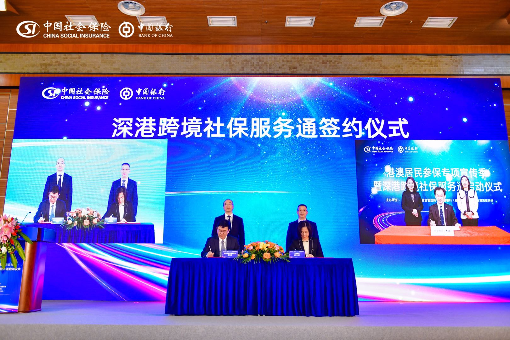 啟動(dòng)儀式上,深圳市社保局與中銀香港、深圳中行簽訂合作協(xié)議,通過社銀合作,社保現(xiàn)場(chǎng)服務(wù)首次跨境走進(jìn)香港,香港居民能夠在“家門口”暢享優(yōu)質(zhì)、高效、便利的深圳社保服務(wù),正式開啟了深港社??缇撤?wù)新局面。12月2日起,符合條件的港澳居民可在中銀香港指定網(wǎng)點(diǎn)申請(qǐng)靈活就業(yè)和城鄉(xiāng)居民養(yǎng)老保險(xiǎn)參保登記業(yè)務(wù)。