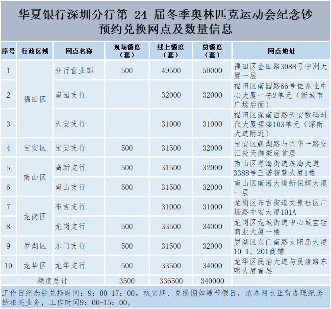 華夏銀行深圳分行共10家網(wǎng)點(diǎn)承辦冬奧紀(jì)念鈔發(fā)行工作。為方便老年客戶(hù)預(yù)約紀(jì)念鈔,該行7家網(wǎng)點(diǎn)開(kāi)放線下預(yù)約,市民可持有效的第二代居民身份證原件至公告的現(xiàn)場(chǎng)預(yù)約網(wǎng)點(diǎn)辦理預(yù)約。紀(jì)念鈔先到先得,額滿為止。