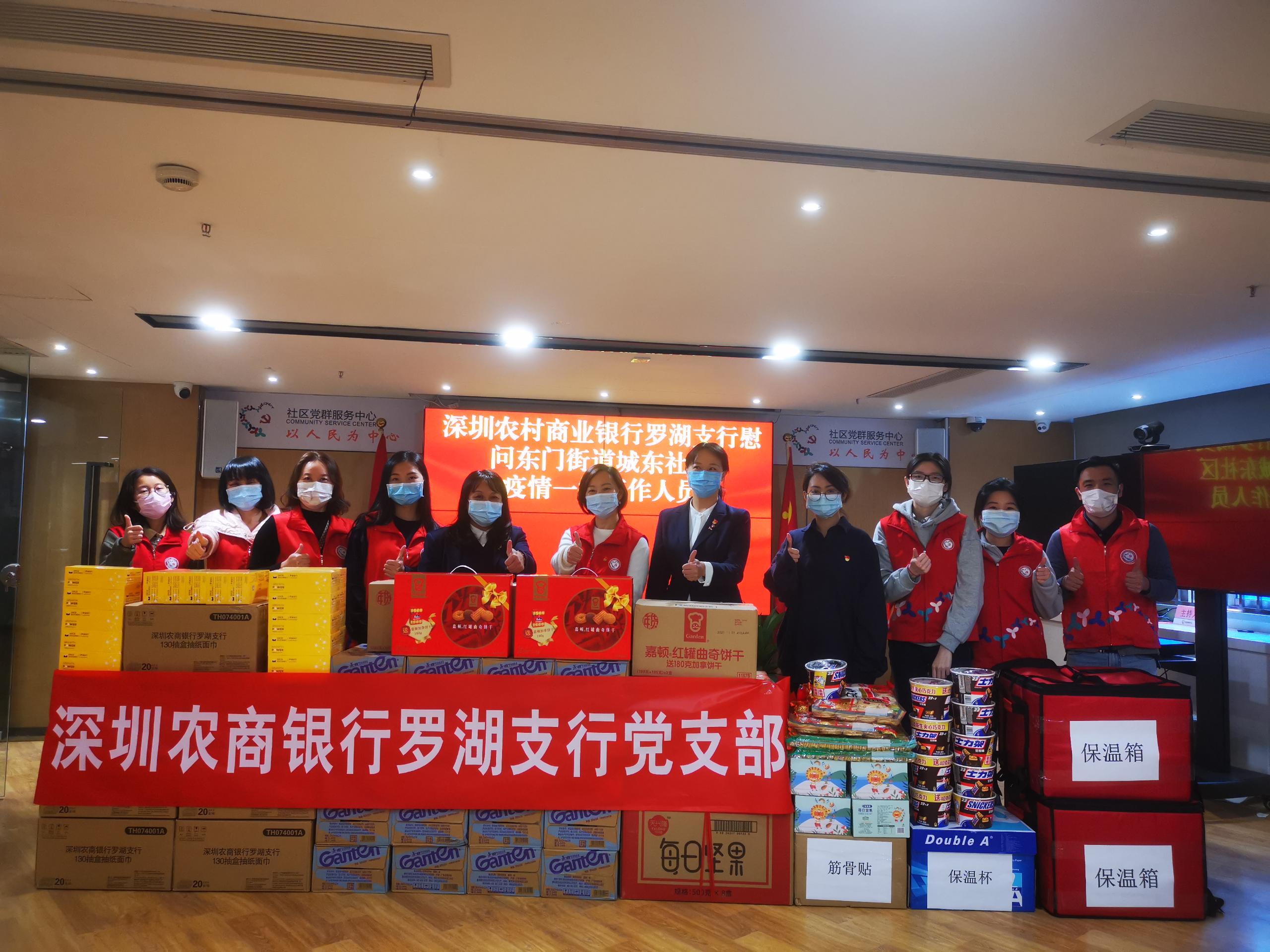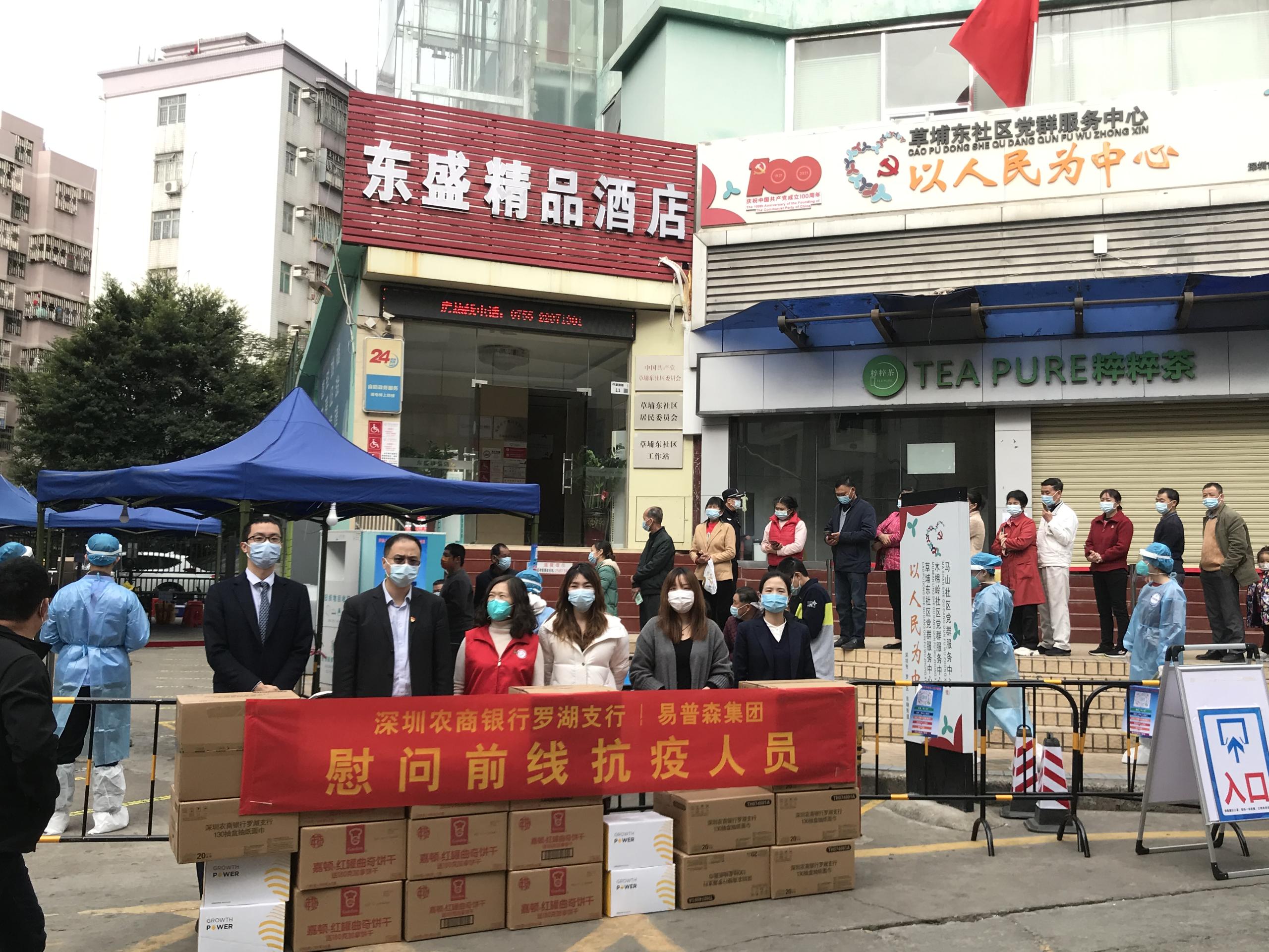 此次慰問活動的開展也得到了深圳農(nóng)商銀行羅湖支行企業(yè)客戶的積極響應(yīng)。易普森集團(tuán)、深圳市富寶東門市場管理有限公司在獲悉深圳農(nóng)商銀行此次活動后,積極響應(yīng),表示要為羅湖區(qū)做一份貢獻(xiàn),于是與該行攜手為羅湖區(qū)前線抗疫人員送去物資和問候。