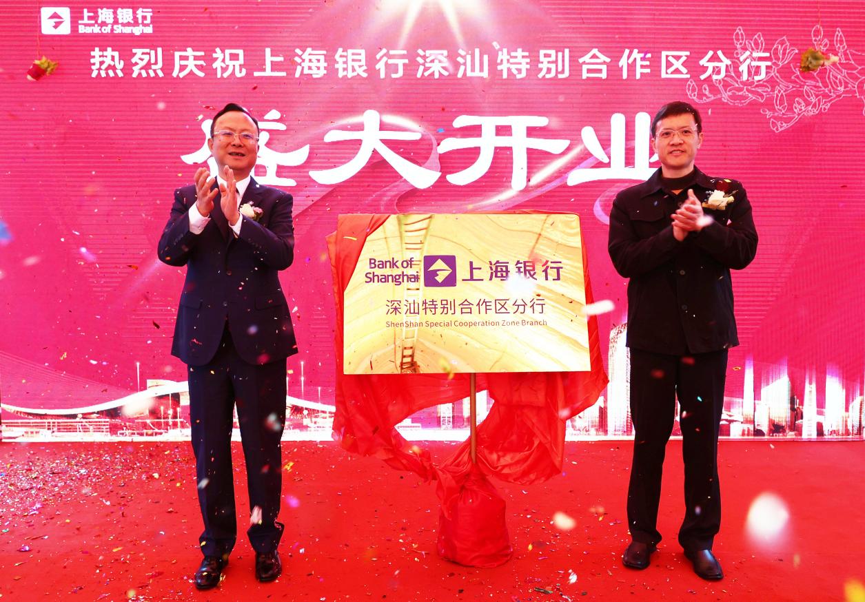上海銀行朱健行長和深汕特別合作區(qū)管委會吳曲波主任共同為深汕特別合作區(qū)分行揭牌