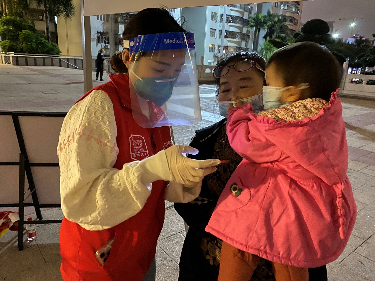 2月18日晚,寒風(fēng)瑟瑟的夜里,皇崗社區(qū)核酸采樣點(diǎn)還排著長(zhǎng)龍。華夏銀行深圳分行的黨員、青年團(tuán)員迅速集結(jié)為“青年突擊隊(duì)”,在做好安全防護(hù)的基礎(chǔ)上,深入福田街道皇崗文化廣場(chǎng)、高發(fā)城馳廣場(chǎng)核酸采集點(diǎn),協(xié)助防疫工作組維護(hù)現(xiàn)場(chǎng)秩序、身份信息登記等志愿服務(wù)工作,幫助社區(qū)提升核酸檢測(cè)效率。高新支行儲(chǔ)雨欣耐心地指導(dǎo)一位抱著小孩的阿姨錄入核酸檢測(cè)信息,她趕到核酸采樣點(diǎn)已經(jīng)接近晚上8點(diǎn)?!皠倓倧闹熊堎~下班,雖然有些晚了,但我還是想來(lái)?!?/p>