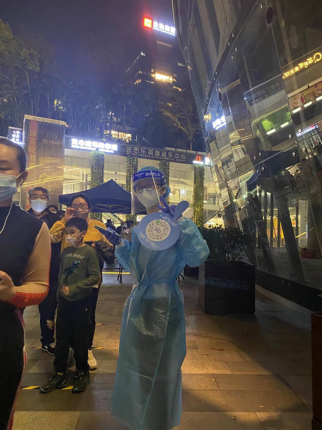 面對(duì)本輪疫情的來(lái)勢(shì)洶洶,新增病例的數(shù)字每天都在持續(xù)增加,許多小區(qū)開始封閉管理。在管控小區(qū)檢測(cè)點(diǎn)志愿者奇缺的狀況下,華夏銀行深圳蛇口支行的李宇航迅速報(bào)名成為社區(qū)義工。很快,他就穿著防護(hù)服,在封閉式管理的小區(qū)內(nèi)幫助核酸檢測(cè)秩序維護(hù)、指導(dǎo)粵核酸操作。他還主動(dòng)承擔(dān)檢測(cè)物資運(yùn)送的工作,小朋友們總是跑到圍欄外喊他“大白”。他背對(duì)著孩子們,自豪地說(shuō):“我是華夏小李!”