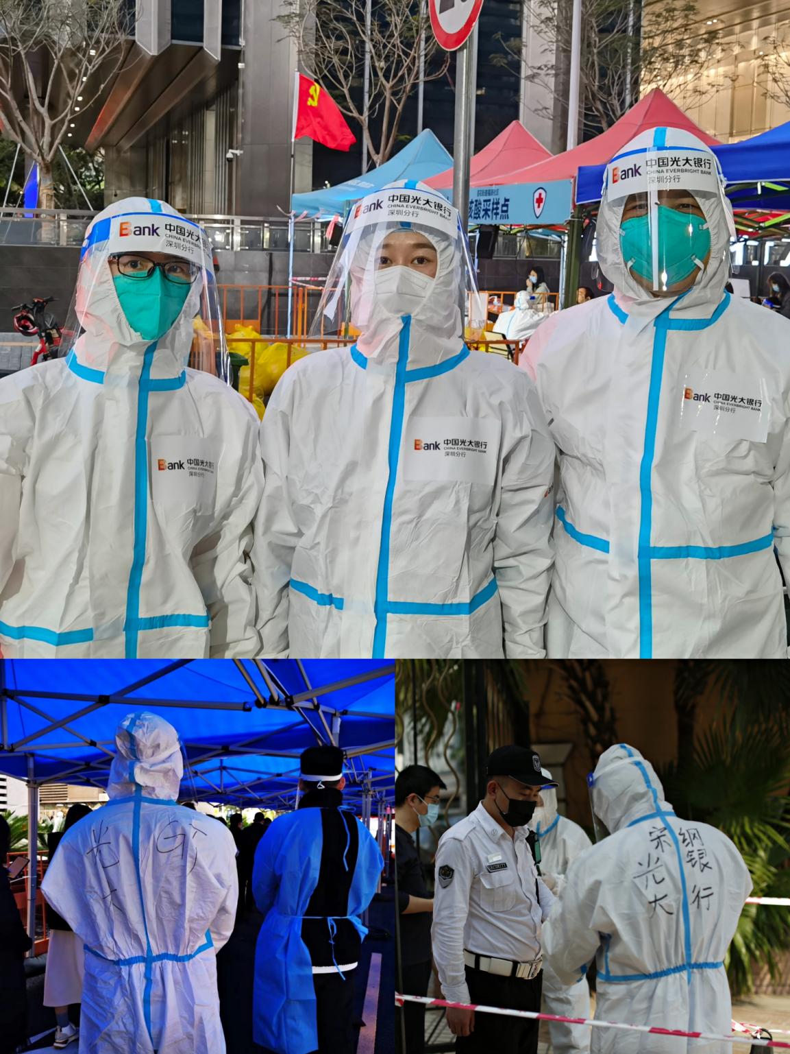 在疫情防控的關(guān)鍵時(shí)期,深圳分行黨委堅(jiān)決貫徹落實(shí)當(dāng)?shù)卣姆揽匾螅中悬h委書記、行長韓學(xué)智同志緊急召開黨委會(huì)議,啟動(dòng)應(yīng)急預(yù)案,積極部署并投入疫情防控工作,確保日常營運(yùn)和客戶服務(wù)等工作有序運(yùn)轉(zhuǎn)。在深圳福田區(qū)金融工作局的組織與號召下,分行黨委要求全體黨員干部發(fā)揮先鋒模范作用,主動(dòng)為社區(qū)疫情防控工作提供志愿服務(wù)。分行黨委委員們率先垂范,分頭帶領(lǐng)黨員干部奔赴社區(qū)慰問抗戰(zhàn)一線工作人員,并犧牲周末休息時(shí)間深入社區(qū)核酸采樣點(diǎn),脫下西裝變身“大白”。深圳分行各黨支部和團(tuán)支部先后組織開展各類志愿服務(wù)累計(jì)時(shí)長超過100小時(shí),活躍在防疫抗疫一線的同志們在全力保障廣大群眾金融服務(wù)需求的同時(shí),和醫(yī)護(hù)工作者一同守護(hù)著千家萬戶。作為集團(tuán)駐深企業(yè)協(xié)同工作的牽頭單位,分行牽頭組建駐深企業(yè)志愿者先鋒隊(duì),緊急投身福田區(qū)抗擊疫情的各個(gè)戰(zhàn)線和各個(gè)角落,不分晝夜、不論疲倦、以實(shí)際行動(dòng)踐行初心、使命和擔(dān)當(dāng),弘揚(yáng)新時(shí)代共產(chǎn)黨人的奉獻(xiàn)精神?!叭绻皇怯H身體驗(yàn)志愿者服務(wù)工作,永遠(yuǎn)不知道抗疫人員的工作是如此辛苦!有多少人在負(fù)重前行才確保了深圳市民有序和安寧的生活。此刻很想擁抱可親可敬的你們,防護(hù)服雖然阻擋了我們的擁抱,但無法阻擋我們一起抗擊疫情的心?!币晃恢驹刚哌@樣記錄到。
