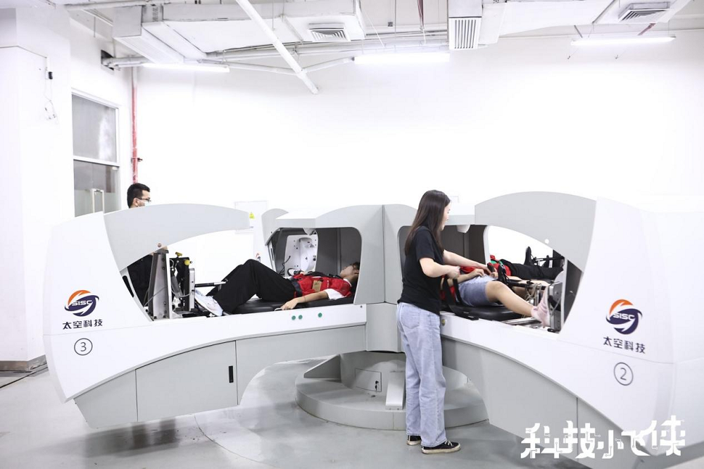 除了太空廢棄物處理實驗,航天訓(xùn)練體驗也得到了孩子們的認可?;顒蝇F(xiàn)場,短臂離心機、模擬失重床等設(shè)備模擬出了航天員的日常訓(xùn)練場景,還沒等講解老師解說完,就有不少小飛俠們歡呼雀躍,迫不及待地想體驗航天員日常訓(xùn)練,旋轉(zhuǎn)、漂浮,小朋友們玩得不亦樂乎,在玩樂的同時,也學(xué)習(xí)到了更多航天知識。