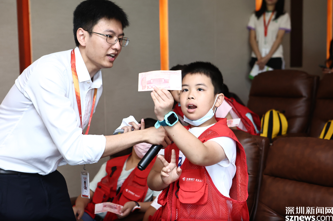 在金融小課堂上“小飛俠”們學(xué)會如何甄別真假幣、提升自身金融素養(yǎng)(圖源:深圳新聞網(wǎng))