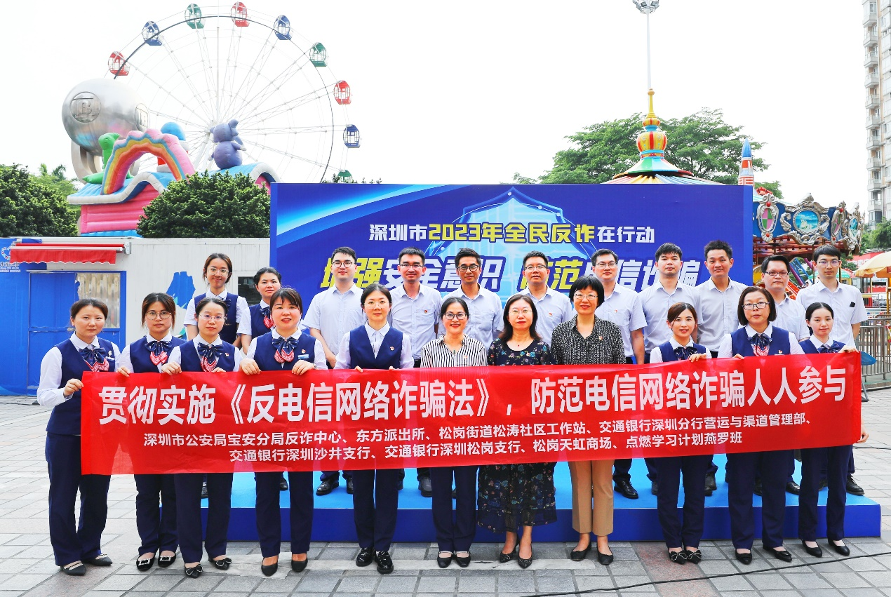 讀特客戶端·深圳新聞網(wǎng)2023年6月1日訊(記者 朱琳 通訊員 張?zhí)駥帲檫M(jìn)一步提高群眾防范各類電信詐騙安全意識(shí),有效打擊詐騙犯罪,預(yù)防和減少電信詐騙案件的發(fā)生,廣泛宣傳落實(shí)《反電信網(wǎng)絡(luò)詐騙法》,6月1日,交通銀行深圳分行聯(lián)合深圳市公安局寶安分局反詐中心、松崗街道辦、東方派出所、松濤社區(qū)工作站、松崗天虹商場(chǎng)開展了主題為“2023年全民反詐在行動(dòng)——增強(qiáng)安全意識(shí),防范電信詐騙”的戶外片區(qū)反詐宣傳活動(dòng)。