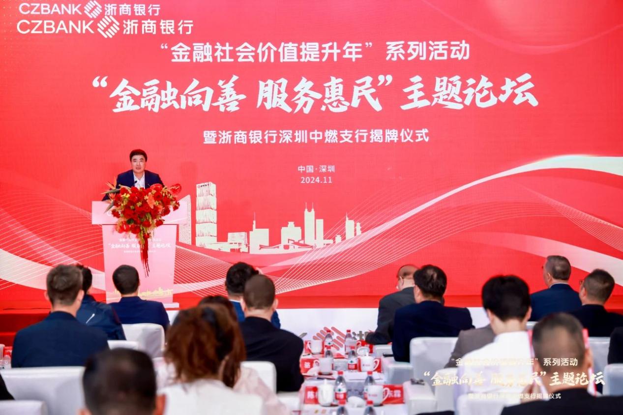 深圳新聞網(wǎng)2024年11月6日訊(記者 朱琳 通訊員 劉璇)為深入貫徹黨的二十屆三中全會和中央金融工作會議精神,11月4日,“金融向善 服務(wù)惠民”主題論壇暨浙商銀行深圳中燃支行揭牌儀式在中國燃?xì)獯髲B舉行。本次活動也是浙商銀行“金融社會價(jià)值提升年”系列活動之一。國務(wù)院發(fā)展研究中心原黨組成員、副主任余斌,中國上市公司協(xié)會會長宋志平,浙商銀行黨委書記、董事長陸建強(qiáng),中國燃?xì)饪毓捎邢薰径戮种飨瘎⒚鬏x等嘉賓出席活動。