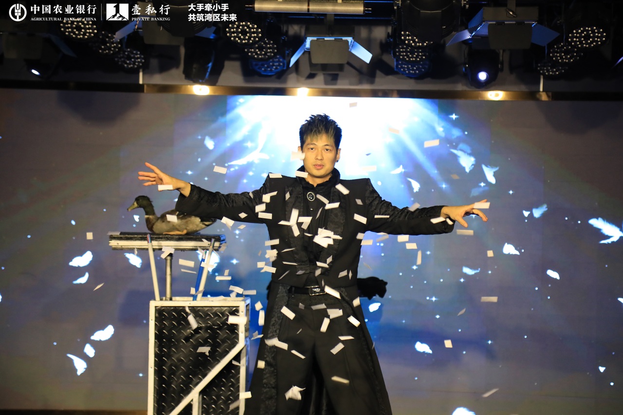 在騎鯨劇場里,奇幻魔術秀環(huán)節(jié),來自農(nóng)業(yè)銀行的小朋友被抽中上臺,與魔術師共同感受魔術的魅力。