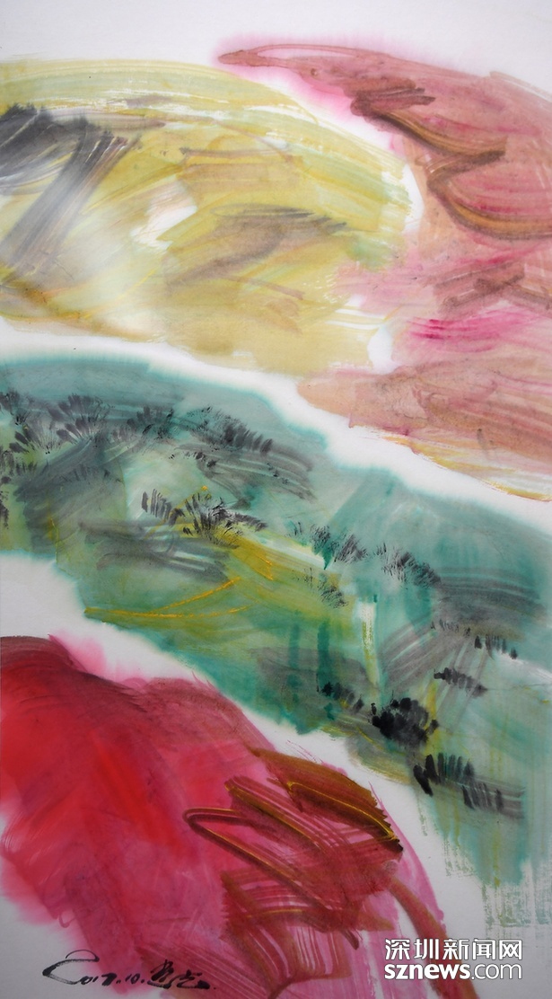 深圳大學(xué)藝術(shù)與設(shè)計(jì)學(xué)院副院長鄒明這樣評價(jià)紀(jì)光吉:如果說繪畫重在情感表達(dá)的話,在紀(jì)光吉的作品里讓人著實(shí)感受了一種隨心所欲的暢快。他幾乎沒有傳統(tǒng)觀念的束縛,行云流水信筆為之,花非花,山非山,墨色交融,隨意為之,意象、心意,只是表現(xiàn)心中對物象的一種感知,畫的樂趣也就自然而然其中了。品味其中,視覺上的快感有種自由自在的輕松,尤其是他畫里的花卉,沒有清晰的花朵,只是綻放的色彩和姿意的線條相互交織在一起,璀璨、斑瀾,洋溢著一種浪漫氣息。