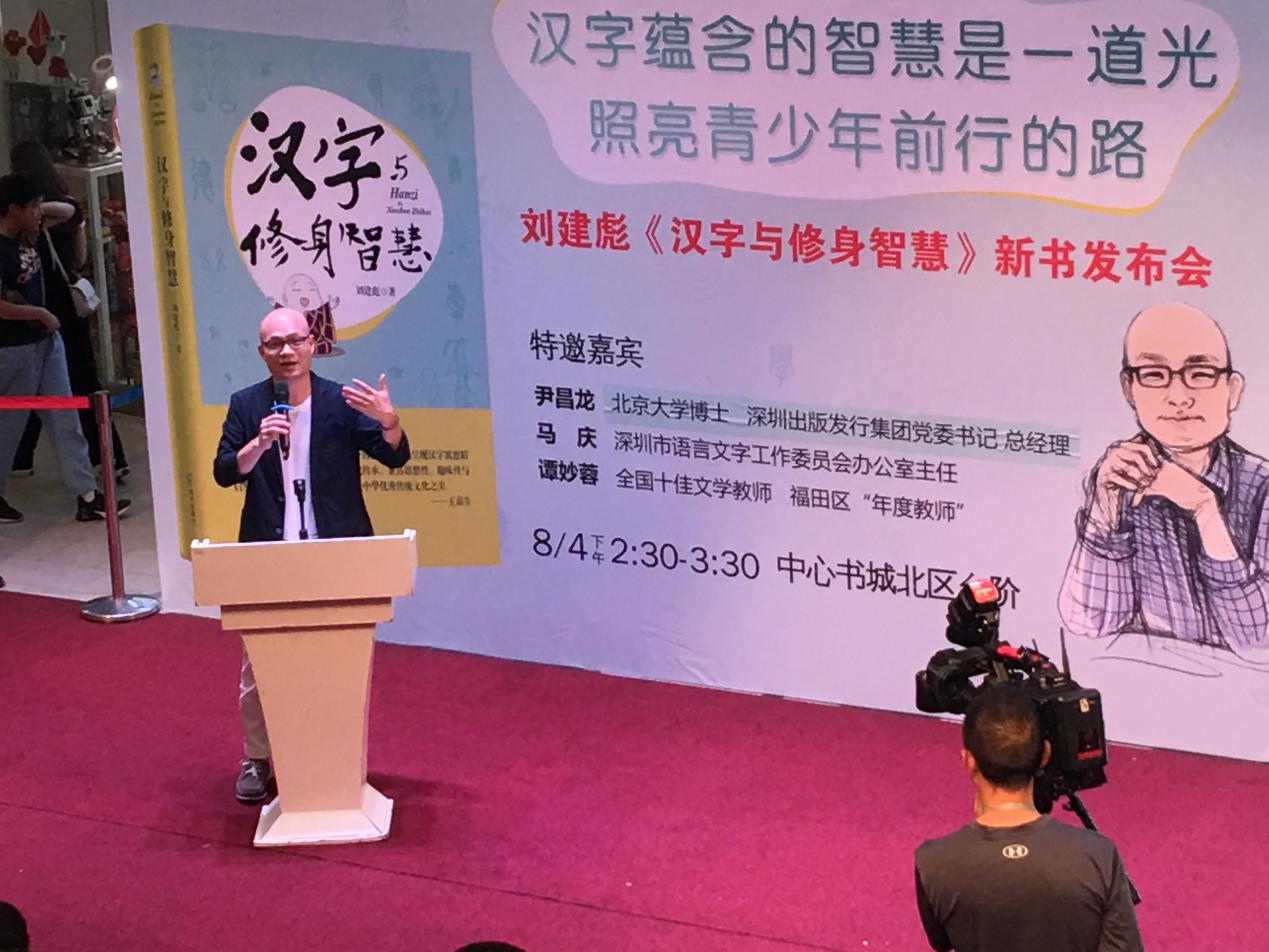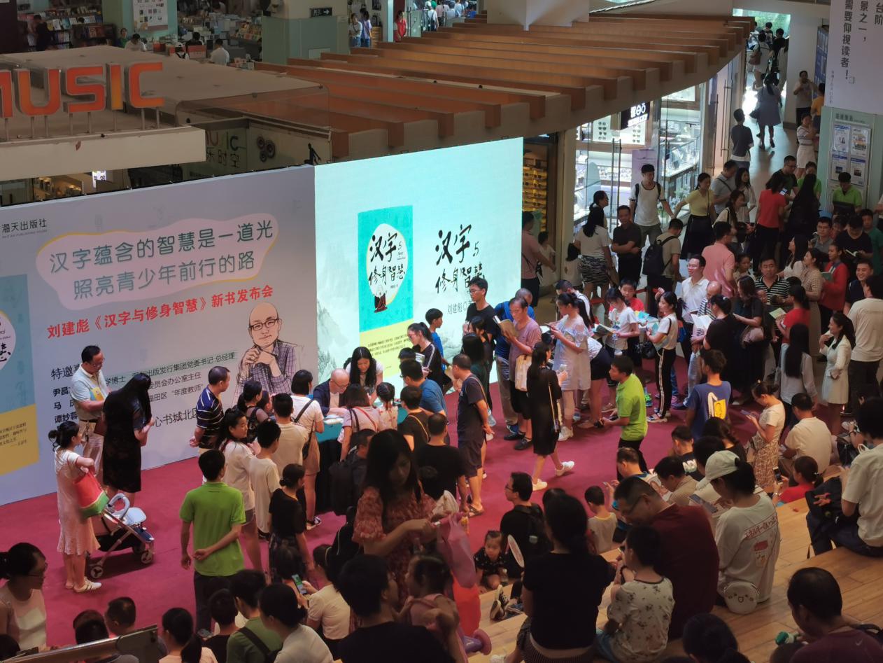 深圳新聞網(wǎng)訊 8月4日下午,壹讀書會(huì)創(chuàng)始人、知名閱讀推廣人劉建彪《漢字與修身智慧》新書發(fā)布會(huì)在深圳書城中心城隆重召開(kāi),本次活動(dòng)由海天出版社和深圳書城中心城共同舉辦,北京大學(xué)文學(xué)博士、深圳出版發(fā)行集團(tuán)黨委 書記、總經(jīng)理尹昌龍,深圳市語(yǔ)言文字工作委員會(huì)辦公室主任馬慶,全國(guó)十佳文學(xué)教師、福田區(qū)“年度教師”譚妙蓉三位嘉賓蒞臨現(xiàn)場(chǎng)并致辭。本次新書發(fā)布受到市民的熱烈追捧,活動(dòng)開(kāi)始前中心書城北區(qū)臺(tái)階、過(guò)道以及走廊或坐著或站著翹首以盼的閱讀愛(ài)好者。
