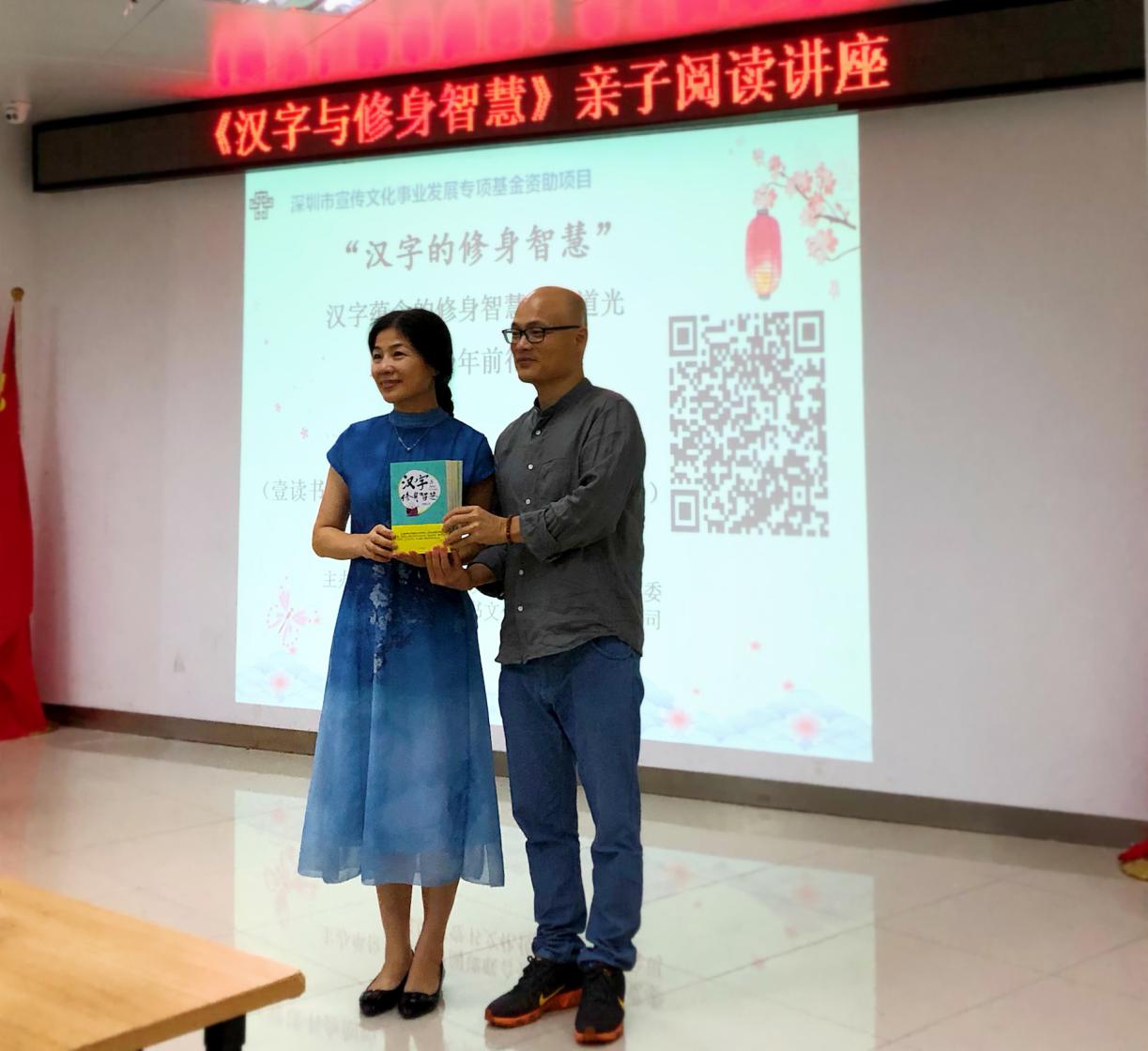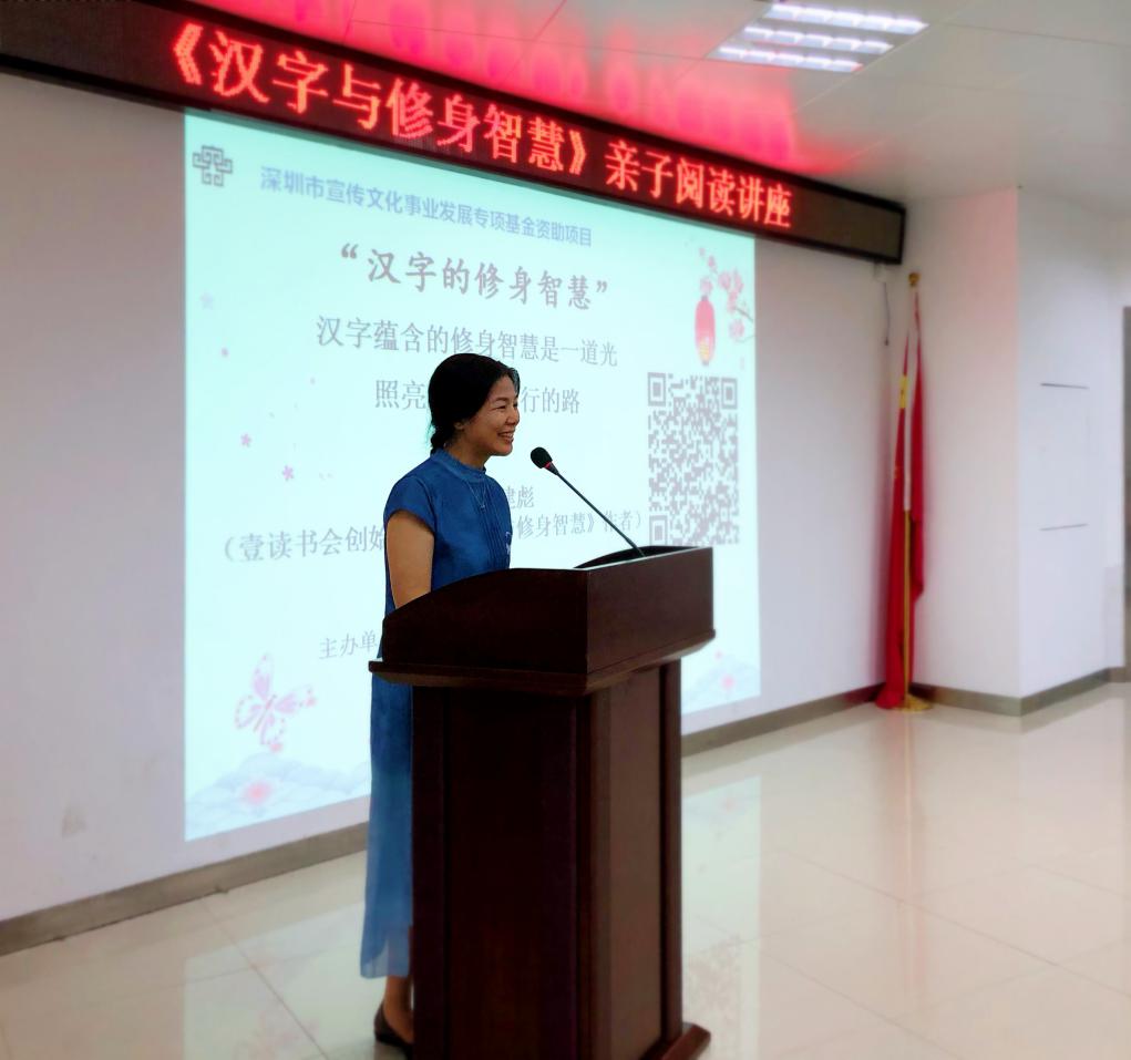 8月23日,首場(chǎng)公益講座“漢字蘊(yùn)含的修身智慧是一道光,照亮青少年前行的路”在龍湖社區(qū)黨群服務(wù)中心舉辦。講座由深圳市閱讀聯(lián)合會(huì)、深圳市壹書文化傳播有限責(zé)任公司、龍湖社區(qū)黨委共同主辦。講座開(kāi)始前,活動(dòng)室坐滿了對(duì)傳統(tǒng)文化感興趣的青少年和他們的家人。每位小朋友都拿到了工作人員發(fā)放的《漢字與修身智慧》一書,并在家長(zhǎng)的陪同下迫不及待翻開(kāi)書籍,感受其中圖文并茂的漢字故事。龍湖社區(qū)黨委羅黎靜書記擔(dān)任本次講座的主持人,通過(guò)話家常開(kāi)場(chǎng),告訴聽(tīng)眾漢字蘊(yùn)含的智慧無(wú)窮無(wú)盡,點(diǎn)燃了在場(chǎng)的家長(zhǎng)和小朋友們與主講嘉賓互動(dòng)的激情。