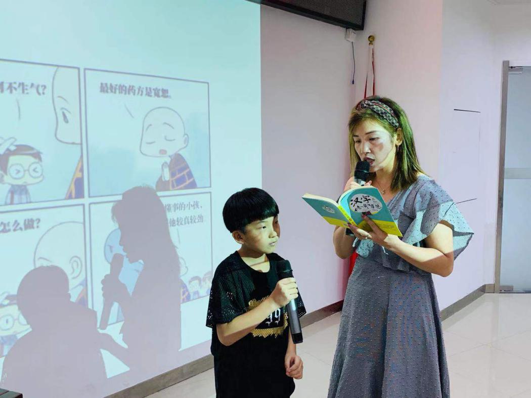 現(xiàn)場(chǎng)親子通過(guò)修身口訣總體把握了書籍所選的三十六個(gè)漢字,也初步體會(huì)到漢字蘊(yùn)含的修身智慧。接著,在主講人的邀請(qǐng)下,參加活動(dòng)的親子一一上臺(tái),對(duì)照書中的漢字漫畫進(jìn)行角色扮演,展開(kāi)親子對(duì)話的同時(shí)身臨其境感受漢字的哲思性。每一位小朋友上臺(tái)展演,或活潑開(kāi)朗、充滿自信地配合家長(zhǎng)完成對(duì)話,或羞怯地在現(xiàn)場(chǎng)聽(tīng)眾的掌聲鼓勵(lì)下突破自己。