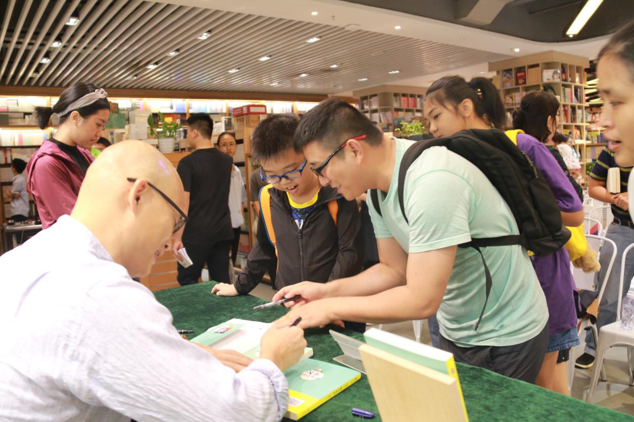活動(dòng)最后,作者劉建彪先生繼續(xù)與讀者展開交流,為購書讀者簽名。來自東莞的江先生坦言,周末帶著小孩無意進(jìn)入羅湖書城,即被活動(dòng)內(nèi)容吸引,在1個(gè)小時(shí)的活動(dòng)中,感受到了漢字的魅力,感受到了深圳濃郁的文化氛圍?!耙院髱Ш⒆佣鄟砩钲跁?,看書聽講座”,他說。