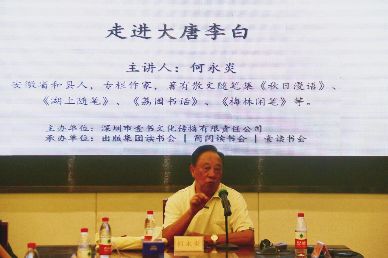 深圳新聞網(wǎng)訊 2019年8月31日下午,“福田區(qū)第三屆文學(xué)精品有聲閱讀藝術(shù)節(jié)”之“唐詩三百首”專場活動“走進(jìn)大唐李白”公益文化講座暨最美唐詩朗誦會在簡閱書吧香蜜湖店三樓多功能室成功舉辦?;顒佑缮钲谑幸紩幕瘋鞑ビ邢挢?zé)任公司、深圳市書城文化投資控股有限公司主辦,出版集團(tuán)讀書會、簡閱讀書會和壹讀書會承辦,本次活動吸引了眾多對中國傳統(tǒng)文化富有興趣的詩歌愛好者,活動開始前已座無虛席,靜候這場關(guān)于李白、關(guān)于詩歌的文化盛宴。