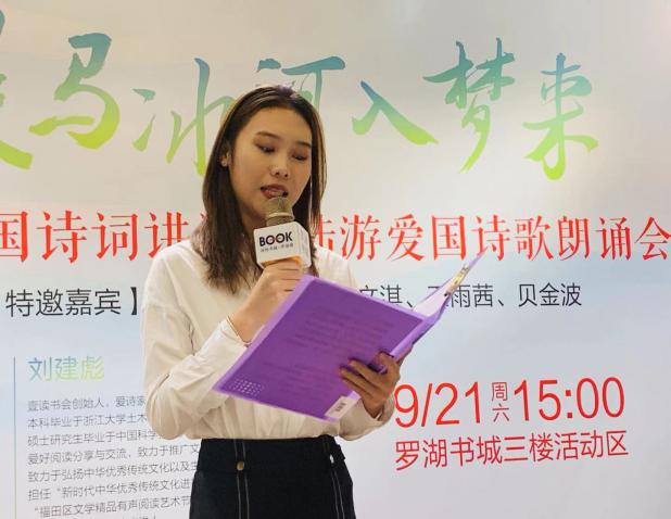 據(jù)悉,為弘揚(yáng)愛(ài)國(guó)主義精神,壹書(shū)公司9月份安排了陸游、辛棄疾兩位著名愛(ài)國(guó)詩(shī)人的詩(shī)詞講讀和愛(ài)國(guó)詩(shī)詞朗誦,“詩(shī)詞,是詩(shī)人從心底里流露出來(lái)的生命體驗(yàn),在學(xué)習(xí)愛(ài)國(guó)詩(shī)詞、特別是朗誦愛(ài)國(guó)詩(shī)詞的過(guò)程中,我們更能深刻感受詩(shī)人的愛(ài)國(guó)情懷,從而引起強(qiáng)烈的共鳴?!眲⒔ū胝f(shuō)道。 (通訊員:蔡淑琳)
