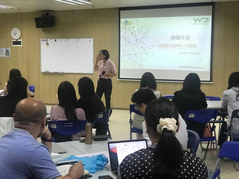 據(jù)介紹,在2019年秋季學(xué)期,新雨計(jì)劃項(xiàng)目共收到福田區(qū)20個(gè)學(xué)校,181個(gè)班,362節(jié)課的普法課程授課需求,自10月14日開始,新雨計(jì)劃項(xiàng)目志愿律師已經(jīng)陸續(xù)開始進(jìn)入校園授課。為滿足更多學(xué)校的普法課程需求,同時(shí)也為更多志愿律師提供參與到新雨計(jì)劃項(xiàng)目活動(dòng)中的機(jī)會(huì),維德中心于10月18日、19日分別舉辦了一場志愿律師崗前培訓(xùn)活動(dòng),參與過培訓(xùn)的律師后續(xù)需要提交一份試課視頻供新雨計(jì)劃資深授課律師進(jìn)行評(píng)估,試課視頻經(jīng)評(píng)估合格的志愿律師將能夠認(rèn)領(lǐng)班級(jí)參與校園授課活動(dòng)。