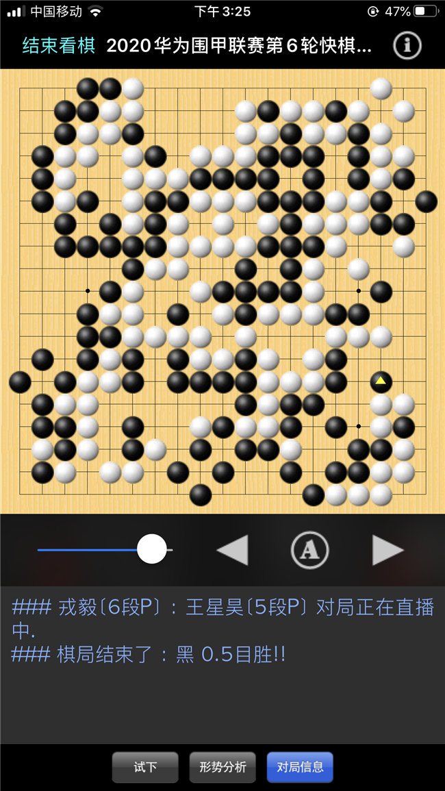 戎毅(右)今天幸運(yùn)地贏了半目,成就了非凡的六輪六連勝!