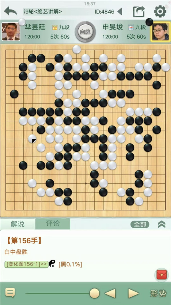 主將臺由深圳宏發(fā)隊的外援、目前韓國等級分第三的申旻埈九段執(zhí)黑對陣江蘇隊的世界冠軍羋昱廷九段。在序盤階段的接觸戰(zhàn)中,黑棋原本簡明處理即可取得優(yōu)勢,但申旻埈選擇了挑起戰(zhàn)斗,并在戰(zhàn)斗中未能處理好棋形,被擅長作戰(zhàn)的羋昱廷抓住機(jī)會一舉反擊,取得勝勢。