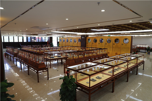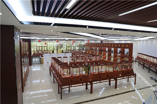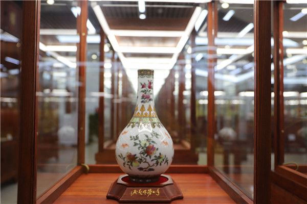 值得重點(diǎn)介紹的是,在珍品陳列區(qū),有不少原全國人大常委會副委員長李鐵映同志親自創(chuàng)作的工藝美術(shù)品。一是“鐵映十八式紫砂”,是李鐵映先生自身藝術(shù)文化修養(yǎng)的結(jié)晶。他以青銅、古玉等重器國寶為模,以詩詞、文論為識,以宜興獨(dú)有的紫砂材質(zhì)和豐富的工藝手段,吸取中國各種傳統(tǒng)工藝的特點(diǎn),創(chuàng)意了具有民族特色的簡潔古雅的紫砂新藝術(shù),精妙構(gòu)思,博觀約取,歷數(shù)年制成。2010年元月,李鐵映先生將“鐵映十八式紫砂” 捐贈一套給國家博物館。二是限量仿制清宮琺瑯彩瓷?,m瑯彩瓷創(chuàng)燒于康熙,興盛于雍正、乾隆兩朝,之后便沉潛史海,難覓芳蹤。李鐵映先生得知后,高度重視,數(shù)度深入相關(guān)博物館和景德鎮(zhèn)院校、企業(yè)調(diào)研,組織成立“紫玄琺瑯瓷研究室”,確立了“發(fā)掘保護(hù)、繼承發(fā)展”的指導(dǎo)思想,提出“仿古不泥古,仿清更超清”仿制要求,經(jīng)過成百上千次的反復(fù)試驗(yàn),最終成品,既具有清代康雍乾琺瑯彩瓷的藝術(shù)品味和精神風(fēng)貌,但在材質(zhì)、工藝、技術(shù)等方面有所超越,可以說,每件作品都能集工藝價值、文化價值、歷史價值、藝術(shù)價值于一身。