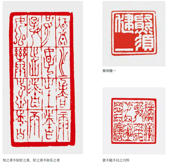 說(shuō)起自己的代表作,寧老師十分謙虛,但筆者還從他的印屏、印作中,從以往宣傳報(bào)道中理出了一些頭緒。比如,剛來(lái)深圳,有感于鄧小平同志的功績(jī),刻了一方《總設(shè)計(jì)師鄧小平》,陳巨來(lái)的印味明顯。2013年寶安區(qū)書(shū)法協(xié)會(huì)發(fā)行新年掛歷上印有“蛇年大吉”印章,便出自他手。那是一方金文白文印,整體舒朗開(kāi)闊,靈動(dòng)高古,爛漫天成,不失為其代表作。還有,用一方印完整地刻出了268字的《心經(jīng)》亦是獨(dú)一無(wú)二的。他為友所刻《真善美》朱文鳥(niǎo)蟲(chóng)篆,布局疏密自然,光潔妍美,婀娜多姿,韻味無(wú)窮。元朱文白文印《熊須健一》,疏密呼應(yīng),“一”字處大片留紅,與另三字形成強(qiáng)烈對(duì)比,“須”字三撇作美化處理,形成印眼。此印工穩(wěn)爽朗,行刀如筆,耐人尋味。還有應(yīng)約為著名棋手武宮正樹(shù)、徐瑩等所刻鳥(niǎo)蟲(chóng)篆印均“嵌入”圍棋黑白二子的元素,自然貼切,又妙趣橫生。還有為出版社、書(shū)局、書(shū)籍插圖以及賽事配刻的印章更是數(shù)不勝數(shù)。當(dāng)前,寧老師依然精神飽滿、創(chuàng)作旺盛,相信未來(lái)還會(huì)不斷有令人驚喜的印品佳作問(wèn)世。