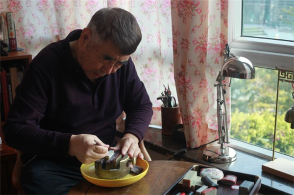 最后,請(qǐng)寧老師對(duì)治印的后學(xué)說(shuō)幾句,他說(shuō)“什么時(shí)候都不晚,只要肯開(kāi)始,找到好的老師,持之以恒,便有機(jī)會(huì)成功”,自己的經(jīng)歷就是一個(gè)證明吧。也是,當(dāng)下中國(guó)逐漸進(jìn)入“老齡化社會(huì)”,許多老人退休之后“無(wú)所事事”,等退體金、等“臨門(mén)一腳”成為常態(tài)。而寧起興憑著一份興趣,六十歲而后拓出一片天地,堪為榜樣!令人欣喜是,他的行為對(duì)子孫也是一種言傳身教,小外孫女2歲時(shí)在街上看到篆字招牌,馬上就說(shuō)這是姥爺?shù)淖?。平日,她還學(xué)著姥爺讀書(shū)刻章的模樣,做手工、畫(huà)畫(huà),常有創(chuàng)意??吹竭@一幕,作為古稀老人,寧起興感到非常欣慰。他說(shuō),自己做到了“老有所為”,還產(chǎn)生了教化子孫的效果,開(kāi)心是自然的。他希望更多的人喜歡中國(guó)篆刻藝術(shù),希望更多的退休老人們生活充實(shí)、老有所為!