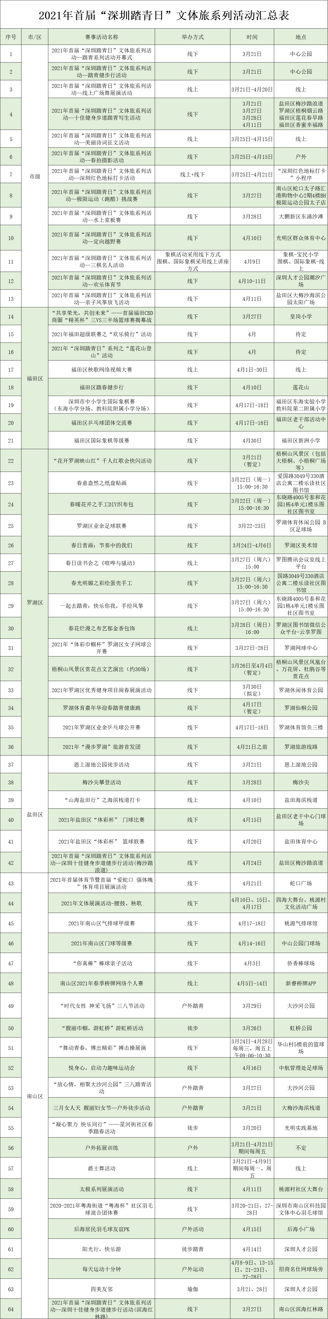 附:深圳踏青日106項活動清單: