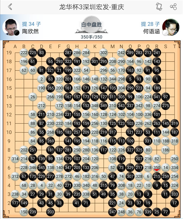 三臺陶欣然執(zhí)黑對陣小將何語涵,局面一直糾結(jié),官子階段有所失誤,最終白棋獲勝。四臺小將石豫來執(zhí)白對陣小將李翔宇,白棋進(jìn)入小官子時候局勢領(lǐng)先,可惜下出了一個小勺子,被黑抓住機(jī)會形成小轉(zhuǎn)換便宜了幾目棋。最終白棋以3/4子差距落敗。