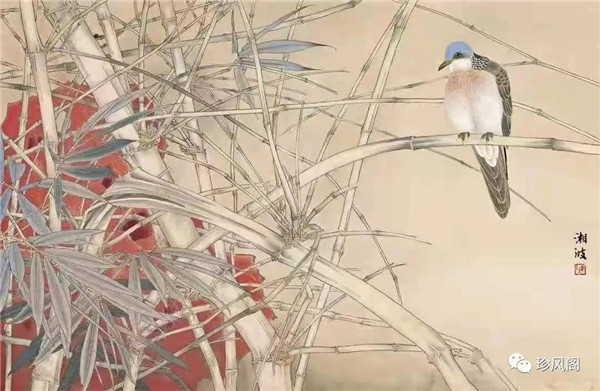 陳湘波的工筆花鳥(niǎo)已是爐火純青,不少作品透現(xiàn)著一種難得的典雅和清麗。每讀一張,都令人耳目一新,留連不已!畫面上的一枝一葉,一羽一尾,無(wú)論在筆墨,設(shè)色和造型上,都能看出畫家功力的深厚和技法的精到。