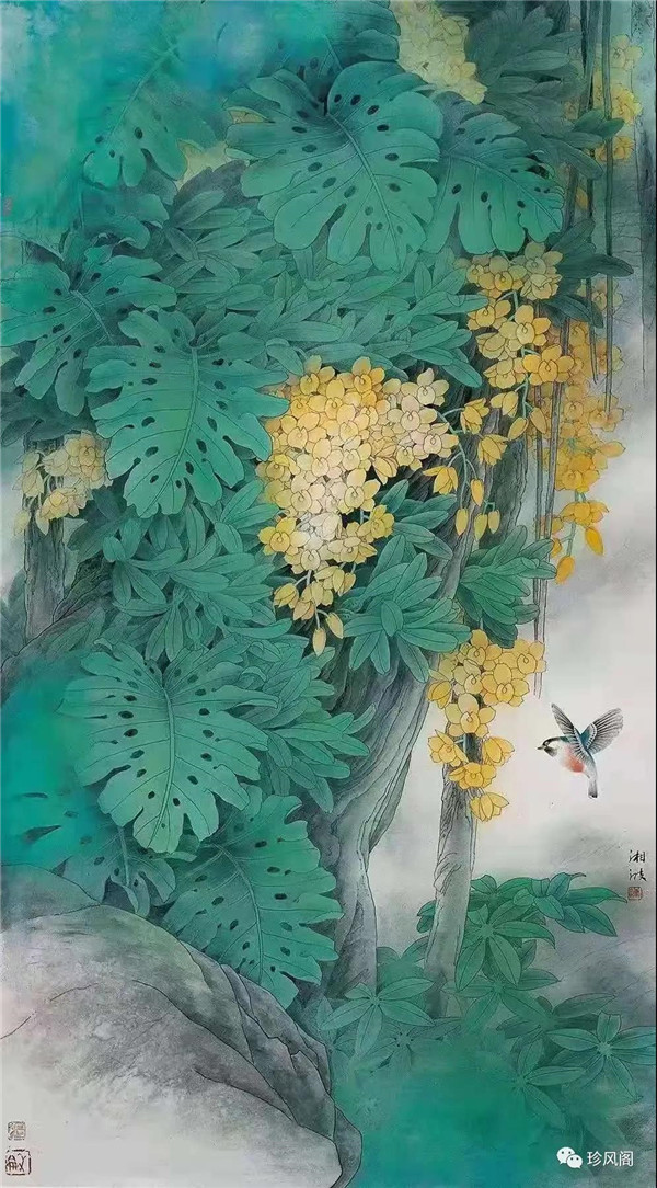 總的來(lái)看,陳湘波先生的工筆花鳥(niǎo)畫,繼承了嶺南畫派重生活、重色彩、重創(chuàng)造的優(yōu)秀傳統(tǒng),創(chuàng)作出來(lái)的是一系列意境深邃幽遠(yuǎn)的作品。他在繼承傳統(tǒng)的基礎(chǔ)上,借鑒現(xiàn)代設(shè)計(jì)、西方繪畫的元素以及其他畫種的繪畫技法,形成了符合現(xiàn)代人審美的具有個(gè)人風(fēng)格的當(dāng)代工筆花鳥(niǎo)作品。
