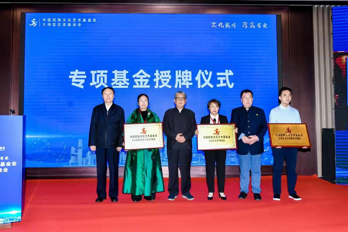 在活動(dòng)現(xiàn)場(chǎng),主辦方為大灣區(qū)文化發(fā)展專(zhuān)項(xiàng)基金、社區(qū)文化專(zhuān)項(xiàng)基金、幸福健康直通車(chē)公益專(zhuān)項(xiàng)基金舉行了授牌儀式。三個(gè)專(zhuān)項(xiàng)基金的加入,為中國(guó)民族文化藝術(shù)基金會(huì)注入了新鮮血液,更為大灣區(qū)文化發(fā)展匯聚起了智慧和力量。