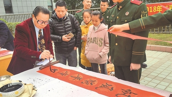 2月5日上午10點(diǎn),由深圳市雙擁辦主辦,中藝馨書畫院承辦的深圳市2018年“喜迎新春翰墨擁軍”書畫進(jìn)軍營(yíng)活動(dòng)走進(jìn)深圳公安邊防六支隊(duì)家屬大院,為官兵、軍屬們送去新春祝福。
