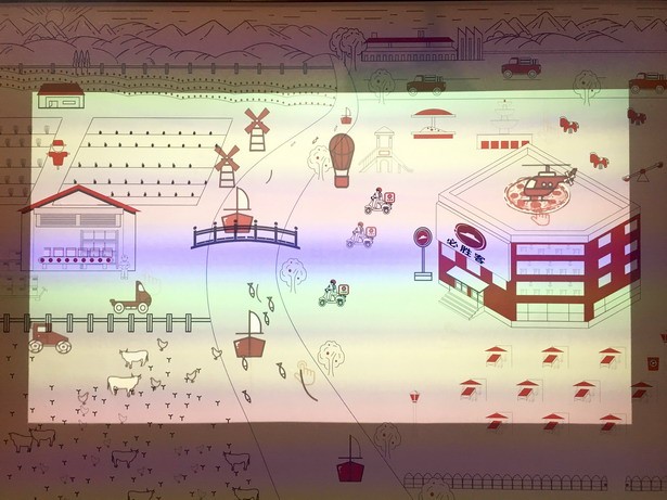 除了“情緒地帶”,智慧餐廳還提供了多元化的互動服務(wù)。門店等位區(qū)有一整面具有奇幻動感效果的投影互動墻,通過獨特的觸摸啟動可以探索必勝客的比薩從原料種植、加工、生產(chǎn),一直到制作成品、奉客、外送等一系列過程,為顧客提供趣味十足的多感官虛擬互動體驗,讓無聊的等位時間也變得興味盎然。