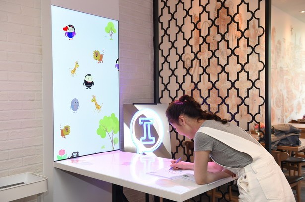 餐廳中心區(qū)域設(shè)置了一款風(fēng)靡全球的“奇妙涂鴉”互動游戲,只需用蠟筆或微信小程序涂鴉,就能親眼見證自己填色的靜態(tài)畫像活靈活現(xiàn)地走入桌面走上墻壁,人人均可當一回“神筆馬良”,用創(chuàng)意打開無限想象,邊吃邊玩,將用餐變成一種愉悅的享受。