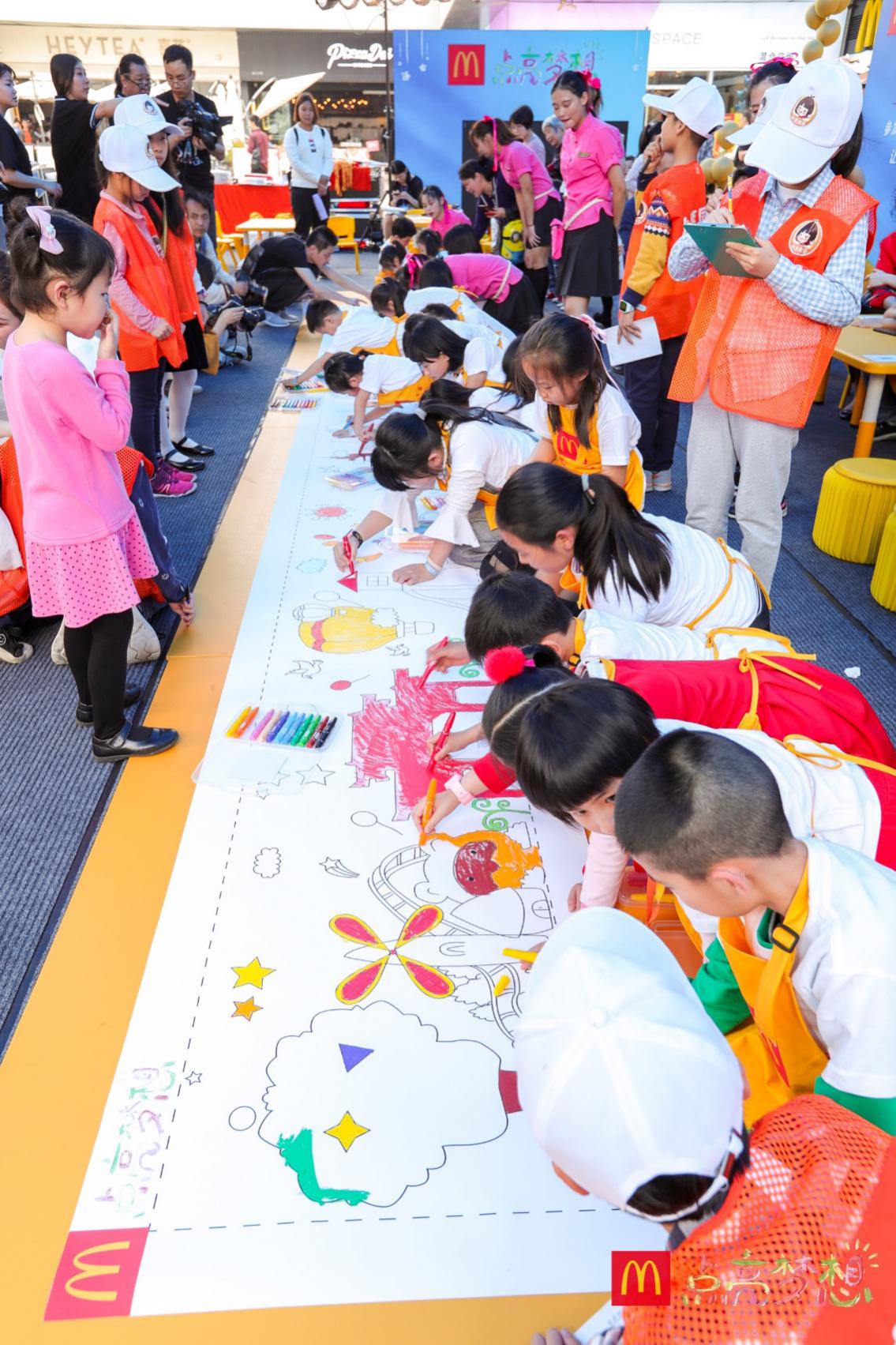 小朋友在麥當(dāng)勞”點(diǎn)亮夢(mèng)想“夢(mèng)想加油站惠州站活動(dòng)現(xiàn)場(chǎng)集體作畫(huà)
