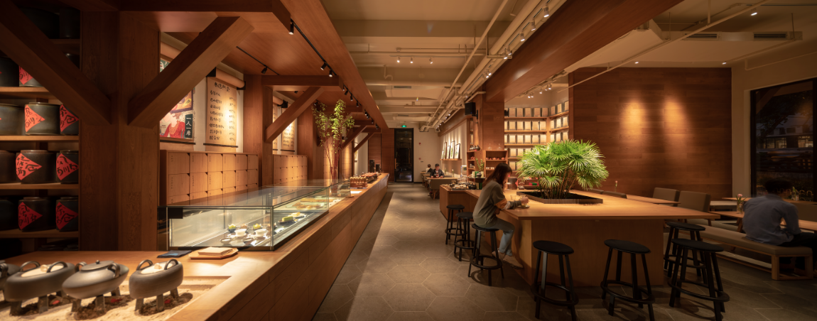 “一個溫暖的會客廳”是tea’stone對所構(gòu)建的茶空間的定義,也是他們對其所提倡的茶美學(xué)生活的表達之一。tea’stone團隊有著深厚的空間美學(xué)造詣,在傳統(tǒng)的基礎(chǔ)上做減法,沉浸式的開放空間,選取東方美學(xué)的核心因素,以傳統(tǒng)梁柱,斗拱和椽檁,勾勒出當(dāng)代簡約的茶空間,呈現(xiàn)出精制溫暖的格調(diào),家私、櫥窗、花藝凡見種種,皆散發(fā)著和諧雅致的美感。簡潔,現(xiàn)代,精致,溫暖,再結(jié)合“一人一席”的飲茶方式,讓喝茶這件事完整靈動,并且稱得上具有美感的生活方式。難怪能看到越來越多的人們抱著筆記本坐在tea’stone里面獨處、辦公、會友。現(xiàn)代中國人的“第三空間”從此又有了新的選擇。