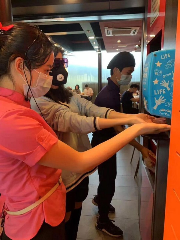 麥當(dāng)勞在餐廳為顧客提供免洗洗手液