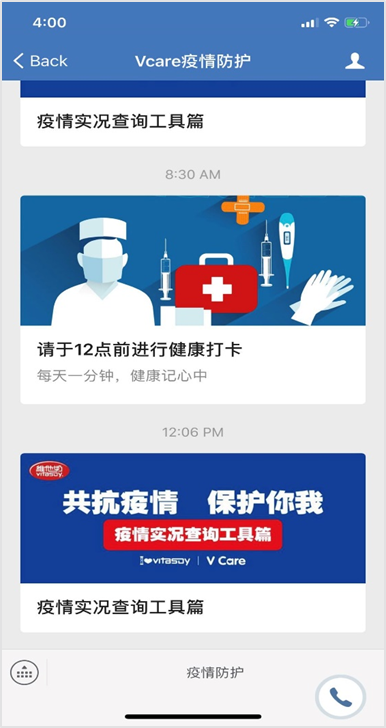 在疫情防控部分,維他奶準(zhǔn)備充足,全力保障每一位員工的健康和安全。首先,利用企業(yè)微信,維他奶建立每日健康監(jiān)控機(jī)制,持續(xù)追蹤全體員工健康狀況。其次,公司利用微信小視頻等媒體工具制作防控指引和要求,讓員工掌握防控知識和防控要求。除了必不可少的佩戴口罩、測量體溫、健康問詢登記和辦公場所和生產(chǎn)區(qū)域的消毒工作外,維他奶還建立全方位覆蓋的防控組織和應(yīng)急預(yù)案,設(shè)立疫情防控專員,鼓勵職能部門的員工使用在線會議等溝通工具以減少近距離接觸,實現(xiàn)工作會議和防疫安全的兩不誤。