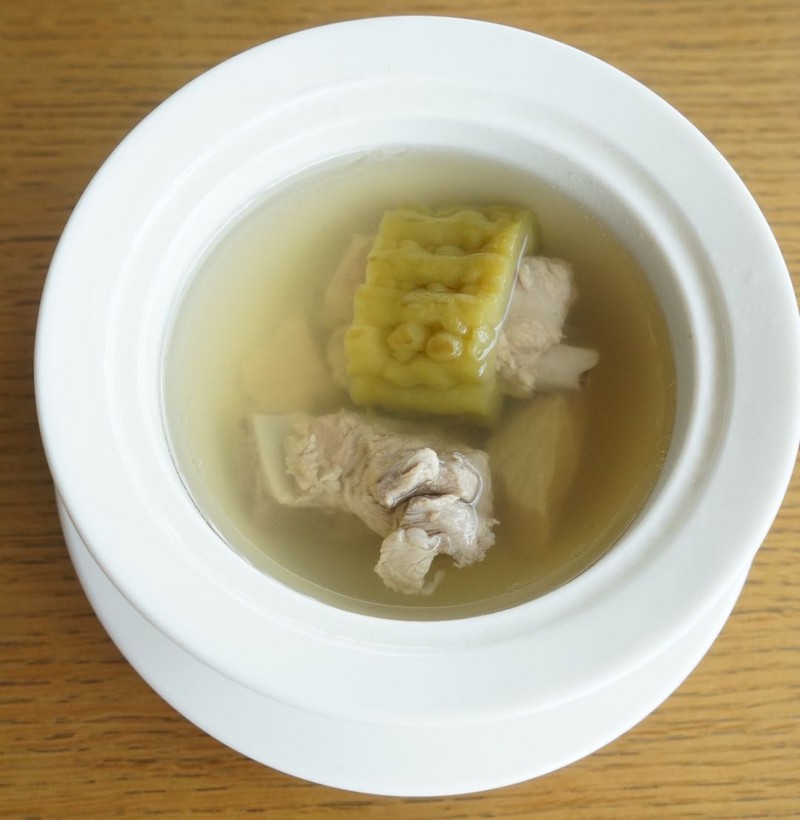 若是清蒸的做法,那么涼瓜的風(fēng)味恐怕是發(fā)揮到高點。有一做法,將涼瓜與河海鮮的“鮮”結(jié)合到一起,同時讓涼瓜吃出清甜來:古法蒸魚頭。魚頭底下墊著的不是絲瓜,而是更加應(yīng)景的涼瓜。廚師一般用本地的涼瓜,經(jīng)過稍微的糖漬,令澀味滲出,甜味悄然滲入,待到蒸后,涼瓜吃來清、爽、甘、甜。此外,它吸收了魚頭的鮮。順德餐廳的師傅對魚的制作頗為講究,魚頭的汁醬、蒸魚的火候,都盡在他們的拿捏中。這么一來,原本不愿意吃涼瓜的食客,恐怕也要打破多年來的難忍之情,一吃再吃了。