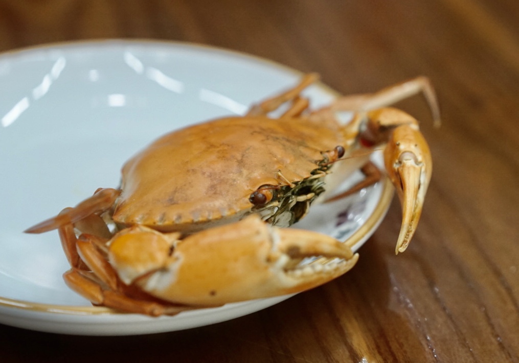 滋粥樓小館近年來都有奄仔蟹食。廚師說,他們只選南沙18~21涌之間珠江口所產(chǎn)的奄仔蟹,因珠江水鹽度僅約14度,且在咸淡水交界處,因此蟹比其他產(chǎn)地的鮮度和干凈度更勝一籌,兼具淡水蟹的鮮嫩肉質(zhì)和咸水蟹的豐腴多膏。脂香肉嫩,且?guī)в忻黠@的鮮甜味。蟹膏則是水紅柔滑,仿似流沙咸蛋黃,沒有黃油蟹的重口味,也沒有大閘蟹的硬度,因此有不少老饕會選在此時去品嘗,更有食家贊它是“平民版黃油蟹”。