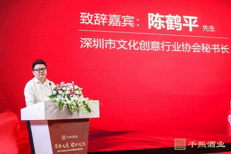 深圳市文化創(chuàng)意行業(yè)協(xié)會秘書長陳鶴平在致晚宴詞中指出,千熙走進鵬城,不僅讓給予了深圳的醬酒愛好者一次難能寶貴的相聚機會,也大家對千熙品牌有了新的認(rèn)識,選擇千熙是極其正確的選擇。