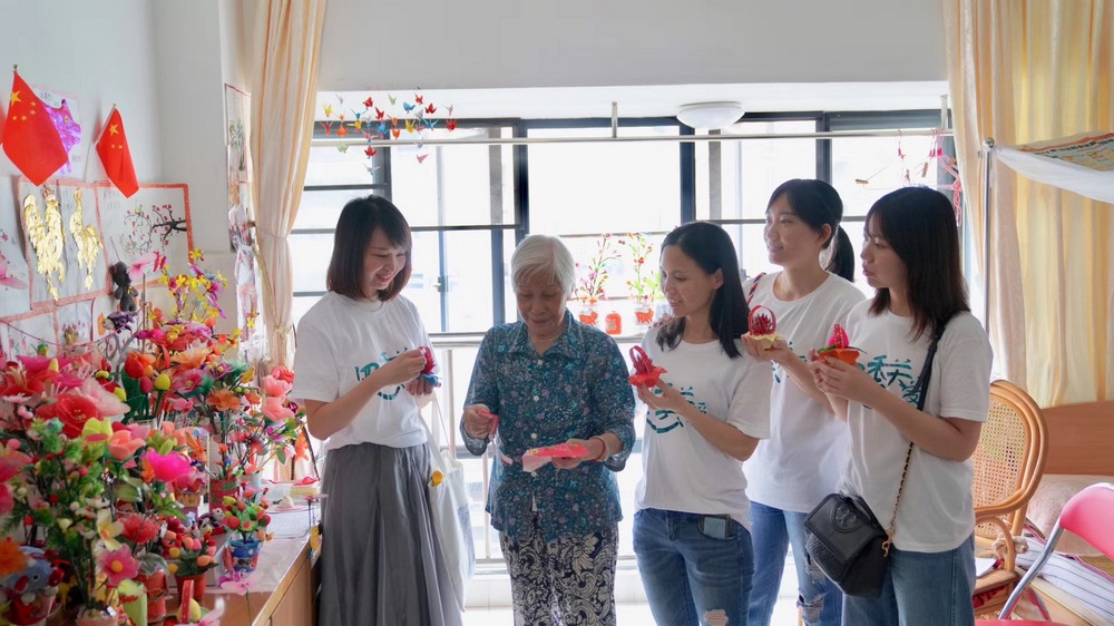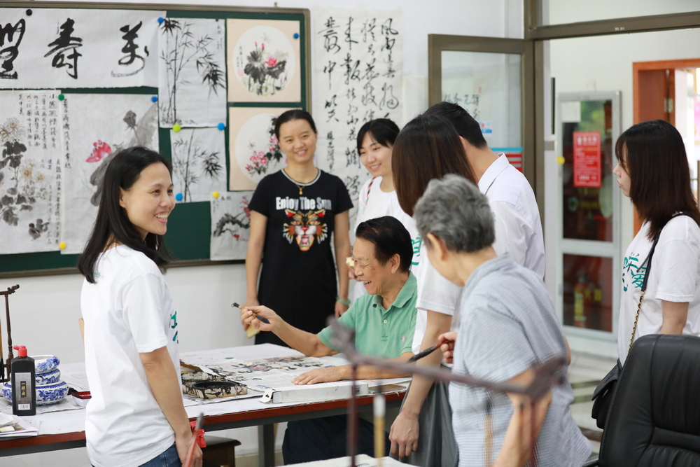 月圓一年有12次,但是叫中秋的只有一次?!八募疽趾苤匾晜鹘y(tǒng)節(jié)日對(duì)弱勢(shì)群體的關(guān)愛(ài)。2020年不是我們第一次參加他們的公益活動(dòng)了,還記得去年我們?nèi)サ搅松钲谌腋@行??!敝驹刚叽砘貞浿拔覀兣憷先藢?xiě)毛筆字,聽(tīng)他們講過(guò)去的老故事。有位坐著輪椅的老人還用單反記錄下了我們的笑容?!?/p>