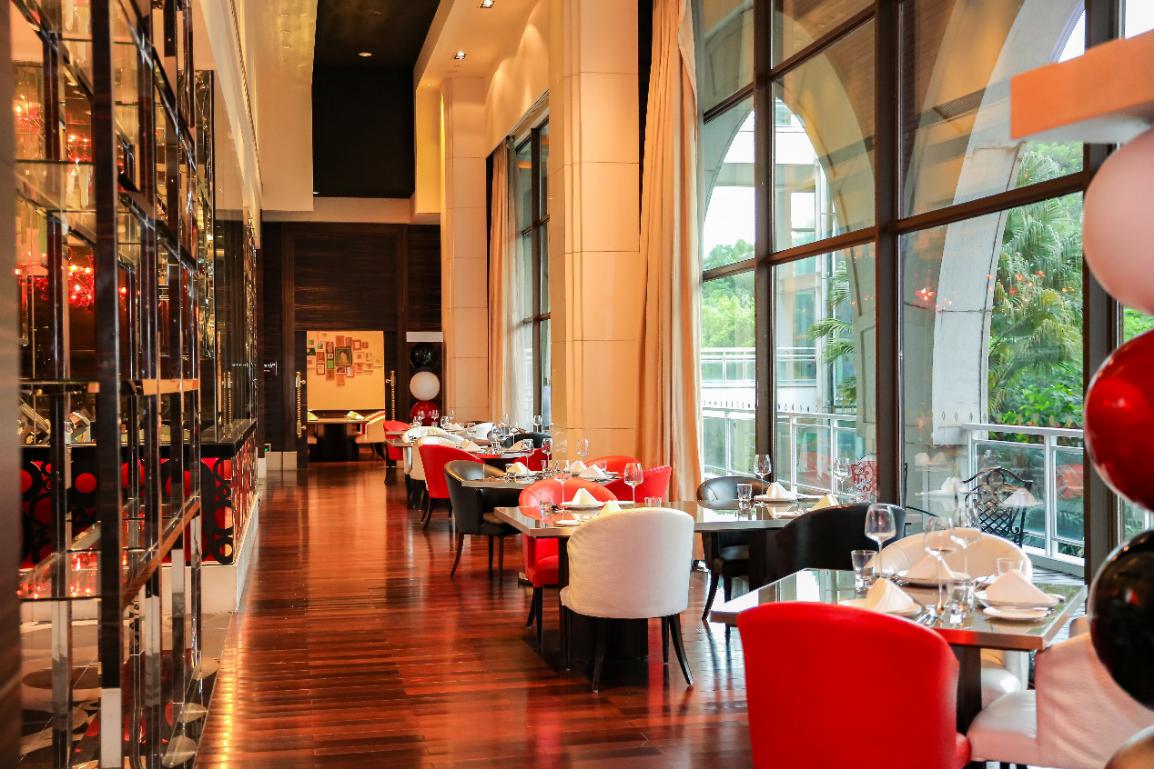 Pipette Bistro法國(guó)餐廳極具藝術(shù)氣息的前沿設(shè)計(jì)與美食佳釀相映成趣,挑高的就餐空間,搭配開放式廚房,讓就餐體驗(yàn)更為靈動(dòng)。隨處可見的環(huán)形裝飾設(shè)計(jì)理念來(lái)源于法國(guó)香檳中肆意跳動(dòng)的氣泡,Pipette Bistro對(duì)精致的追求從廚房里那套紅色的“法拉利”廚具可見一斑,純手工鍛造的歐洲廚房頂級(jí)品牌Molteni烹飪爐具,來(lái)自法國(guó)普羅旺斯,特殊的材質(zhì)可以把熱度傳到臺(tái)面每個(gè)角落。除了開放用餐區(qū),五間主題貴賓包房在黑白兩色的基礎(chǔ)上,裝飾風(fēng)格添加暖色基調(diào),圖書館、香檳房、拿破侖、紅酒房和拉圖房將私密用餐提升到新高度,拉圖房由聞名世界的Chateau Latour酒莊和華僑城洲際大酒店聯(lián)手打造,房間里珍藏了Latour地圖、量酒器、書籍以及由Latour總裁給酒店的一封祝賀信。